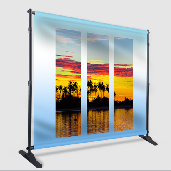 We offer custom printed backdrops that are perfect for events, trade shows, festivals, or any other need where you require a professional presentation from every angle. They come with heavy-duty poles that make the frame and the custom printed graphic itself. You won’t find a better backdrop for a better cost. With these you can customize 100% with your logos, text and colors to really personalize your brand and represent your company.